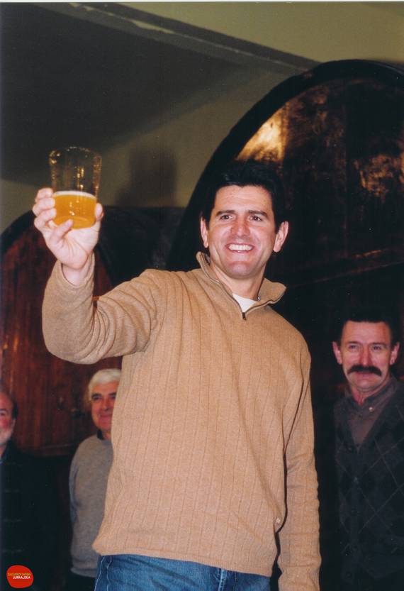 Reportaje fotográfico del X. Sagardo Berriaren Eguna. En la imagen, el protagonista Abraham Olano, con el vaso de sidra en la mano.