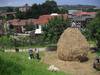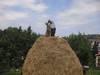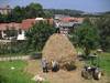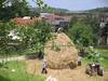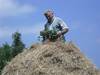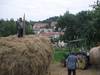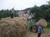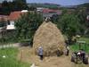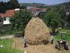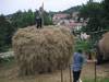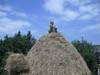Construyendo un almiar (montón de hierba) en el manzanal de Sagardoetxea
